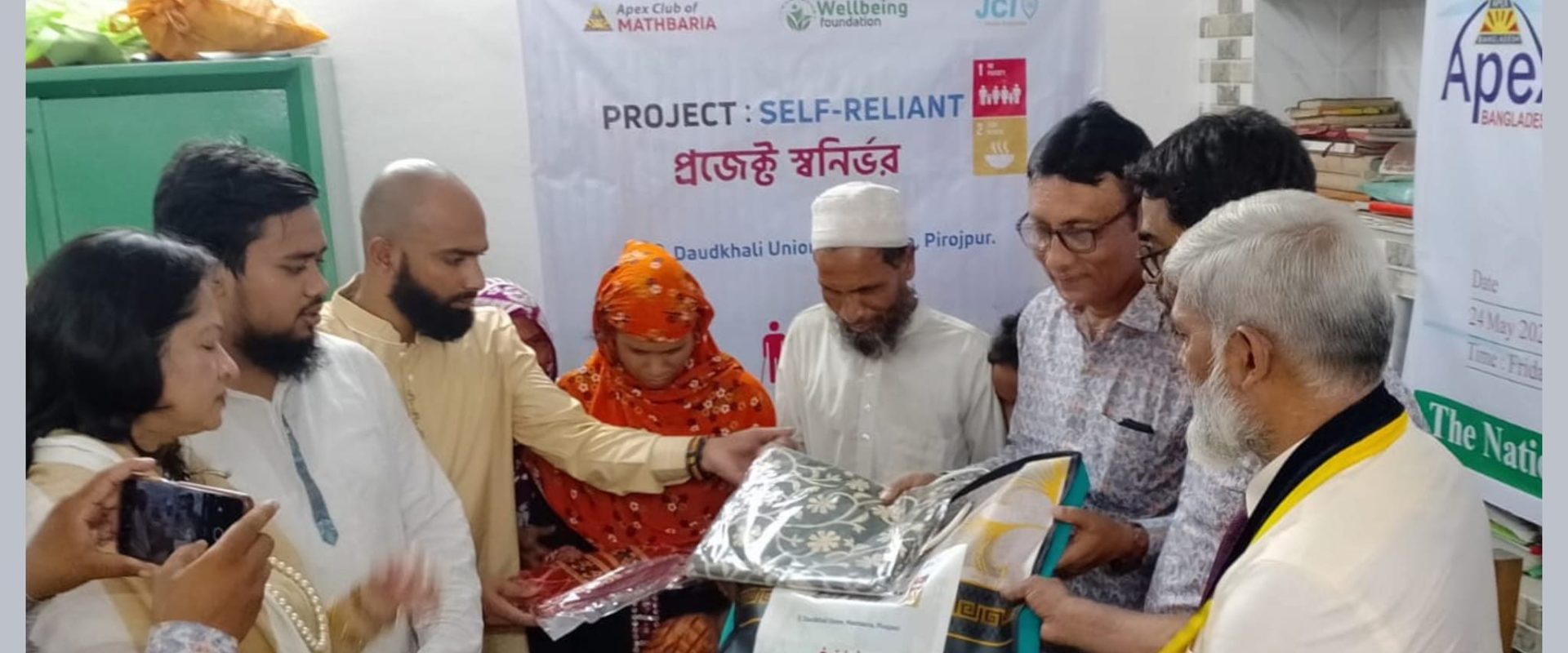 On May 24, 2024, at Daudkhali Union in Mathbaria, Pirojpur, Wellbeing Foundation, in collaboration with Apex Club of Mathbaria and JCI Dhaka Diplomats, officially launched a year-long initiative titled Self-Reliant (Project Swanirvor).